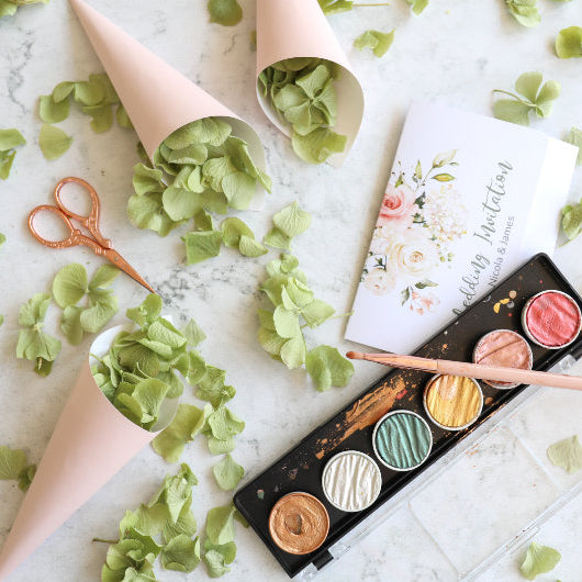Curate your own perfect blend of biodegradable petal confetti for your wedding or celebration.