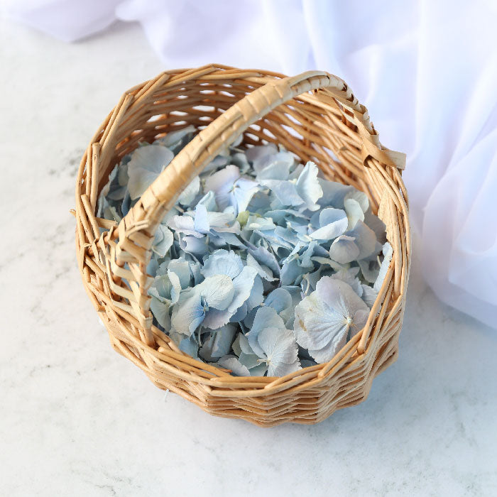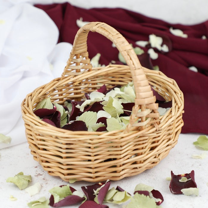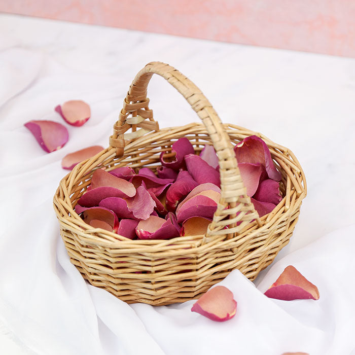 This beautiful Flower Girl Basket is perfect for your flower girls to gently scatter luxury freeze dried rose petals along the aisle on your wedding day. Choose from a wide range of stunning Rose or Hydrangea petal colours to match to your colour scheme.