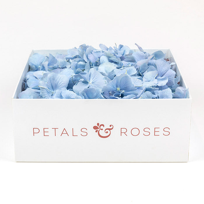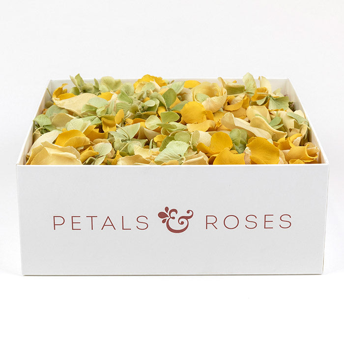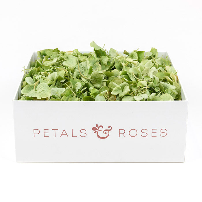 This chic display box comes with 5 litres of petals and comes with a lid for the box too. Ideal for about 40 guests to throw rose or hydrangea petal confetti. The 5 litres of petals perfectly fit into the box, or you can use the lid to hold petals too.