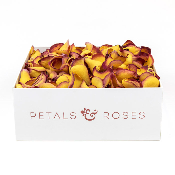 Your luxury freeze dried petals will arrive in a sealed box: 5 Litre Box (enough for approx. 40-50 handfuls) = 24cm x 17.5cm x 14cm