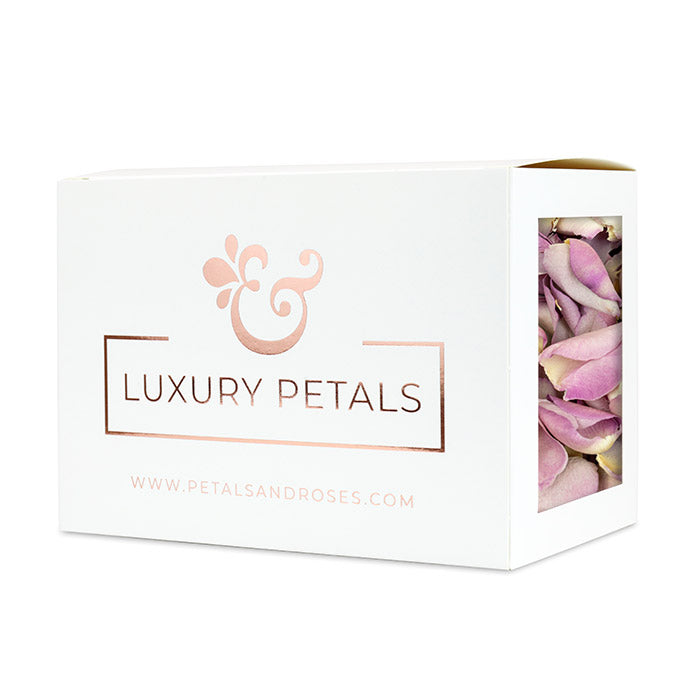 Your 2 Litre Pick & Mix of real flower petals arrives to you in a luxury white box with sleeve. The entire box and sleeve are recyclable including the clear window which is home compostable and the inks are all plant based. Luxury petals and guilt-free packaging.